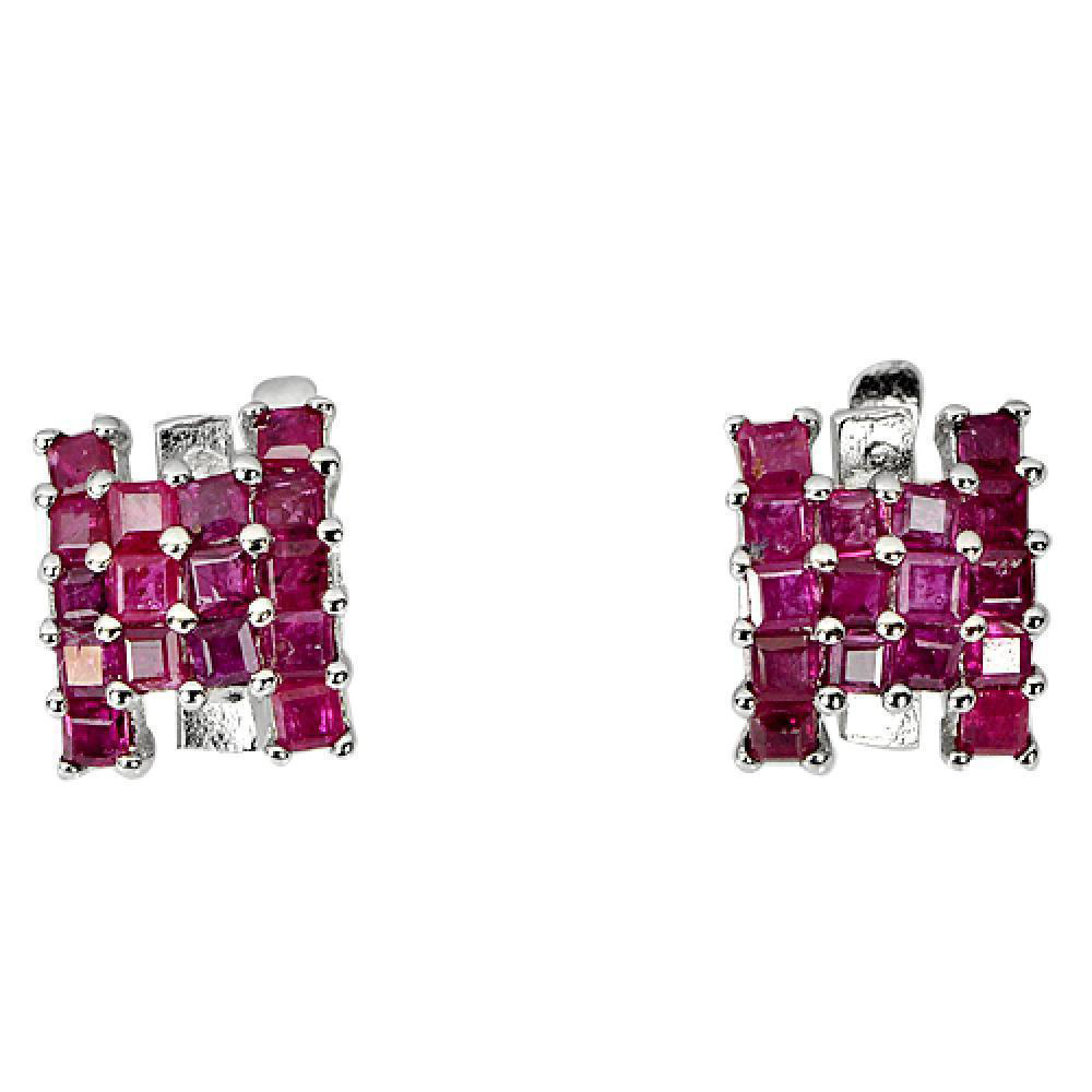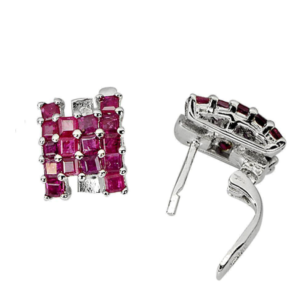 6.58 G. Natural Square Purplish Pink Ruby 925 Sterling Silver Jewelry Earrings