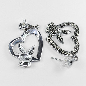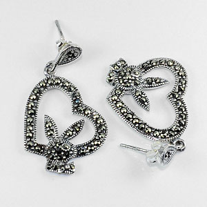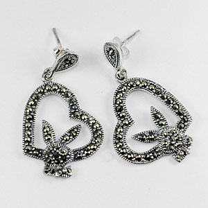 6.06 G. Black Marcasite 925 Sterling Silver Jewelry Earrings