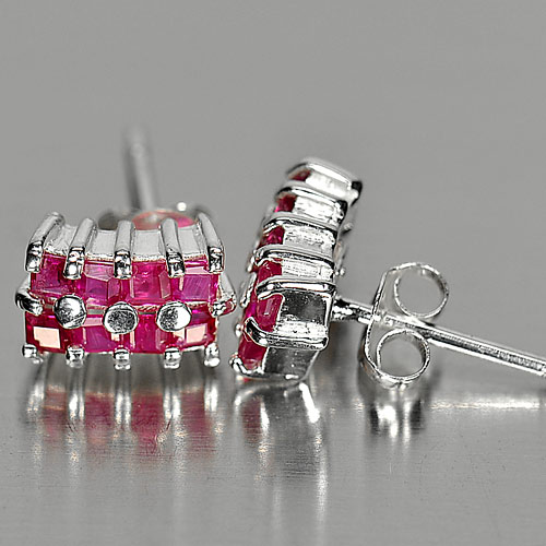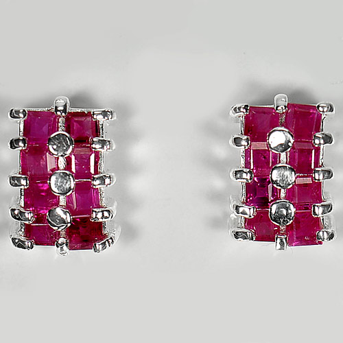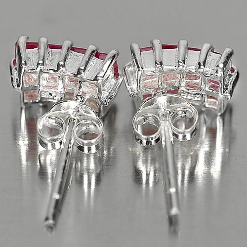 2.19 G. Square Shape Natural Red Ruby Real 925 Silver Jewelry Earrings