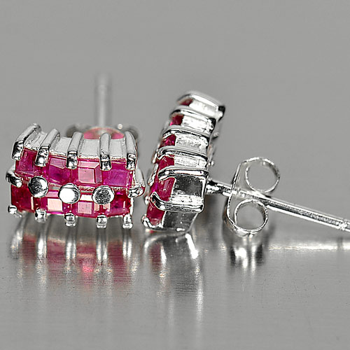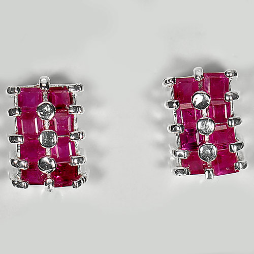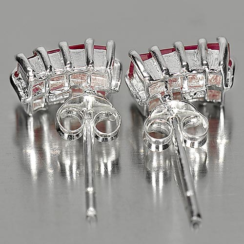 2.19 G. Natural Red Ruby Real 925 Sterling Silver Jewelry Earrings Charming