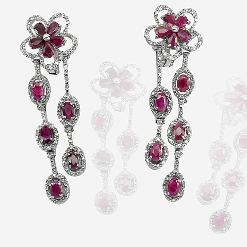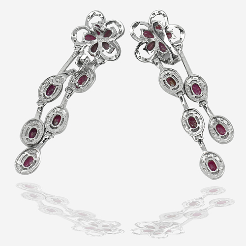 11.83 G. Oval Shape Natural Purplish Red Ruby 925 Silver Jewelry Earrings