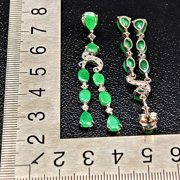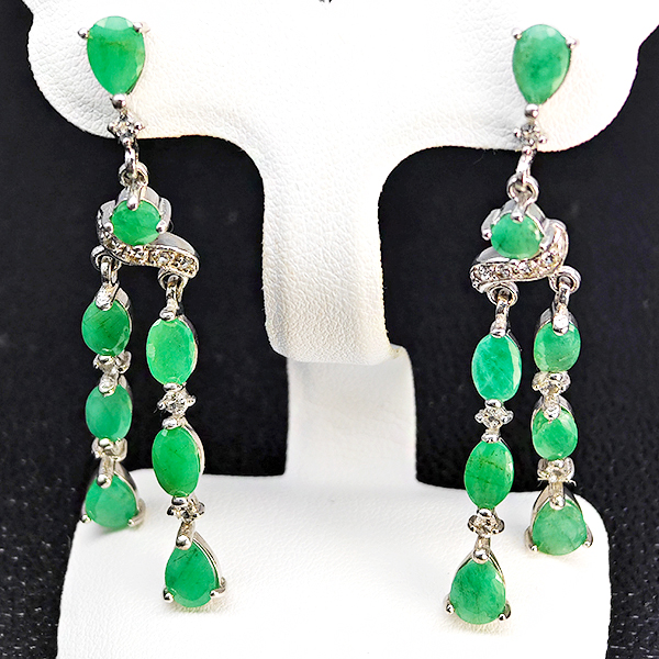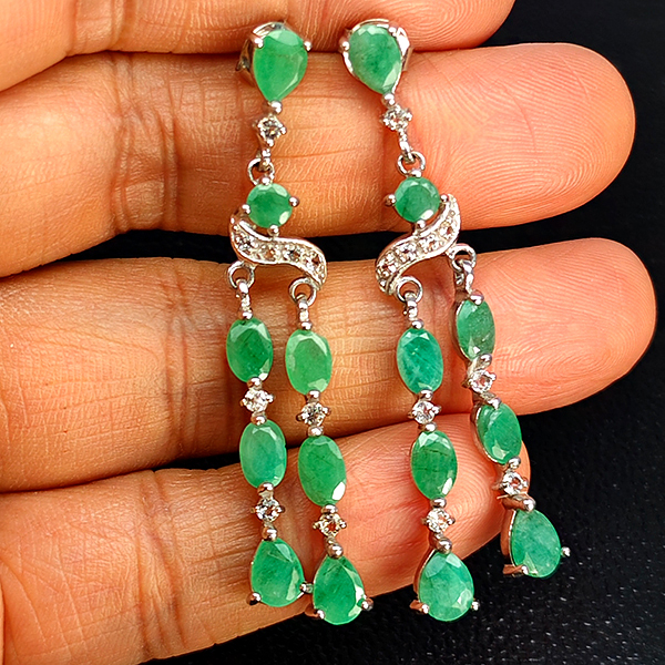 7.08 G. Beautiful Natural Green Emerald 925 Silver Jewelry Earrings