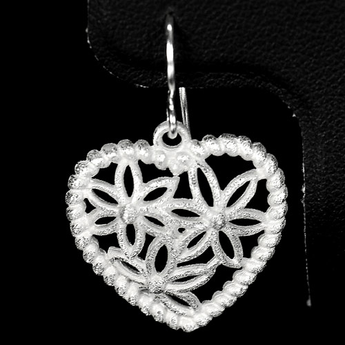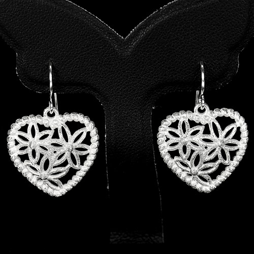 Good 5.07 G. Heart / Flower Shape Natural 925 Sterling Silver Jewelry Earrings