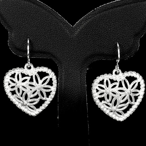 Alluring 5.08 G. Heart / Flower Natural 925 Sterling Silver Jewelry Earrings
