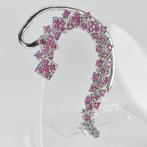 10 G. Charming Natural Ruby Real 925 Sterling Silver Clip Earring Unilateral