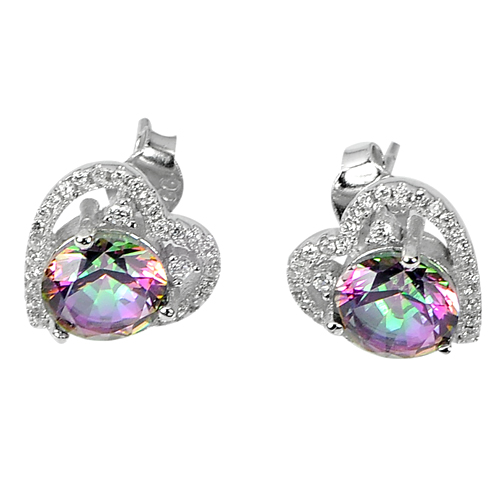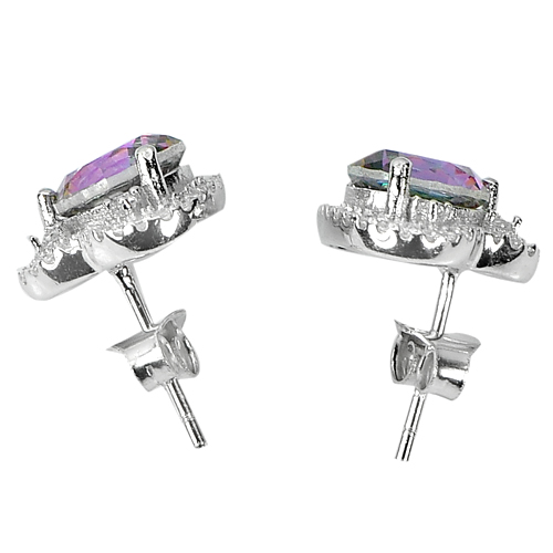 Mystic Green Quartz with Cz Real 925 Sterling Silver Earrings 4.20 G. Natural