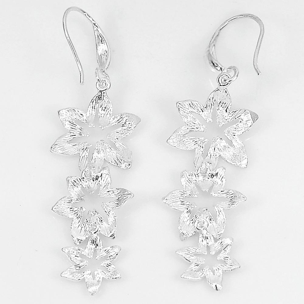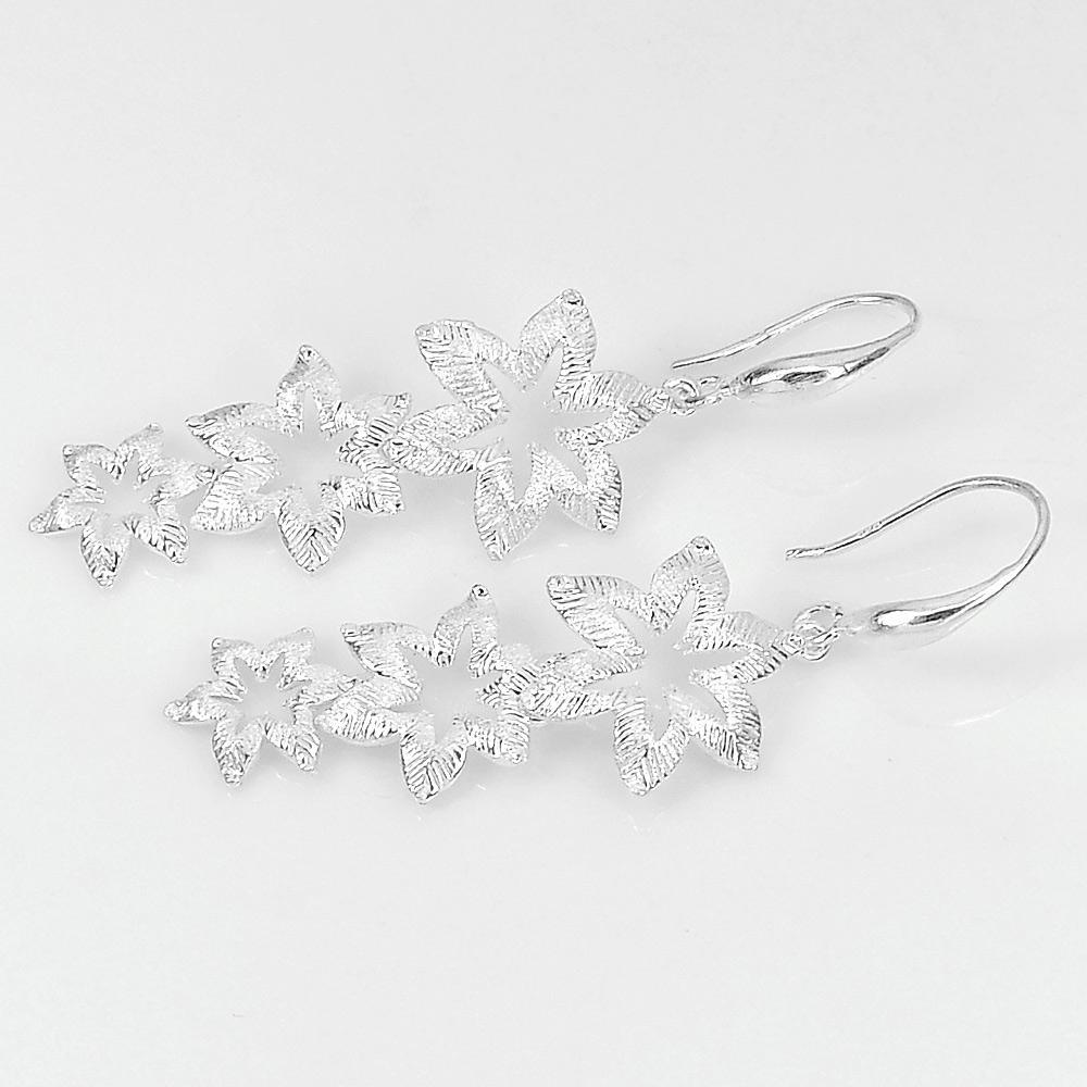 4.19 Grams. Beautiful Flower Real 925 Sterling Silver Fine Jewelry Earrings