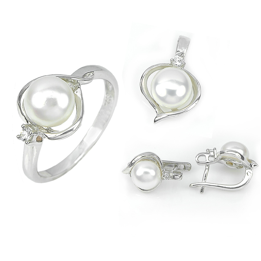 9.25 G. Natural White Pearl 925 Sterling Silver Ring Pendant and Earrings