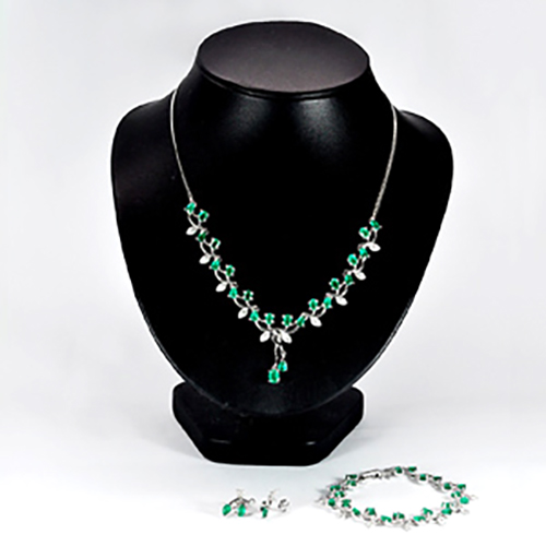 Natural Green Agate Oval 6 x 4 Mm. And Pear 5 x 4 Mm. Many and Round Whit CZ Many. Necklace 10 Inch./ Bracelet 7.5 Inch. Earrings 17x 13 x 11 Mm.