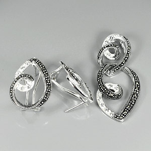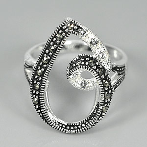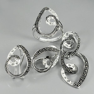15.13 G. Round Black Marcasite Silver Jewelry Sets Ring Pendent Earrings