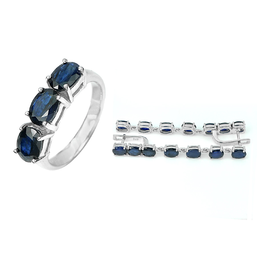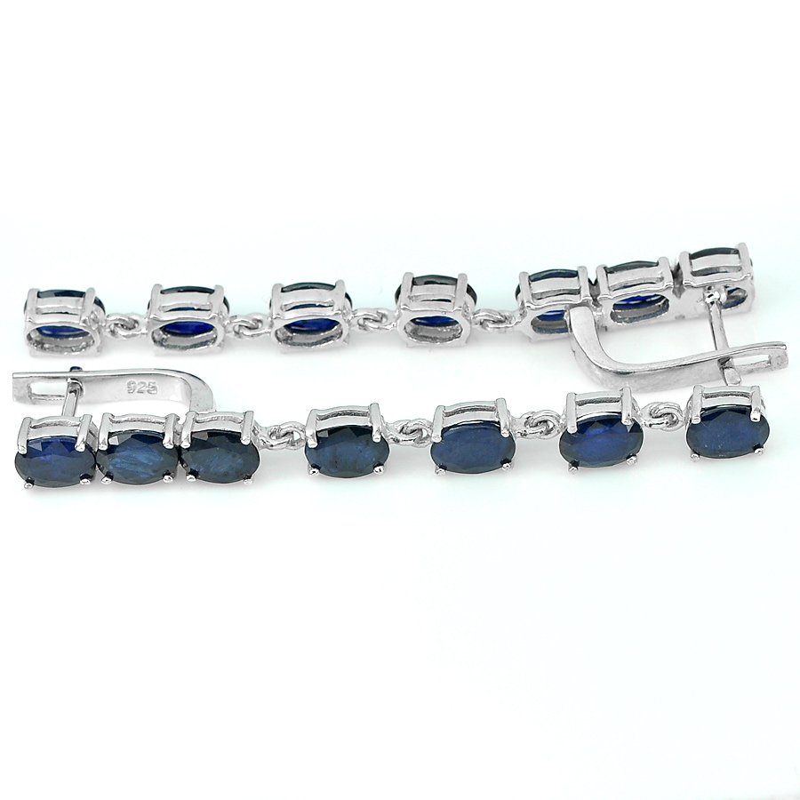 14.16 G. Natural Blue Sapphire 925 Sterling Silver Sets Ring Size 7 Earrings