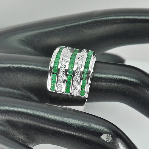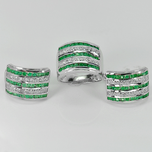 Natural Green Emerald Round 1.5 Mm. Many. And White CZ Round 1 Mm. Many. Jewelry Size Ring 22 x 19 MM. Jewelry Size Earrings 20 x 14 Mm.