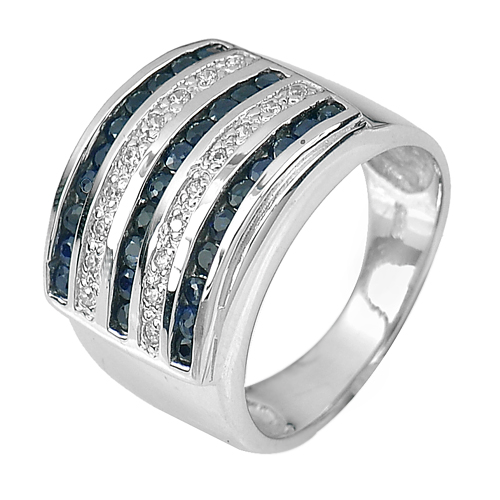 Natural Blue Sapphire Round 1.6 x 1.6 Mm. And White CZ Round Size 1 x 1 Mm. Stam 925
