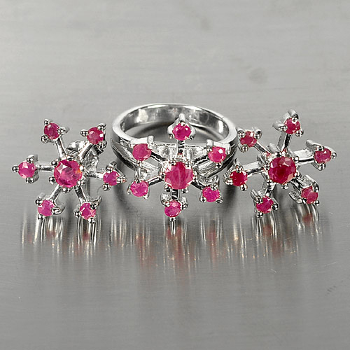 Ring Silver Natural Purplish Pink Ruby Round 4.5 x 4.5 Mm. 1 Pcs. 2.5 x 2.5 Mm. 6 Pcs. Earrings Silver Natural Purplish Red Round 4.5 x 4.5 Mm. 2 Pcs. 2.5 x 2.5 Mm. 12 Pcs. Stam 925