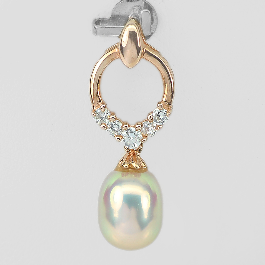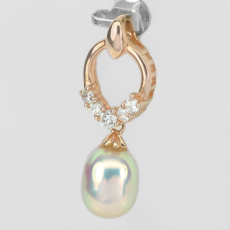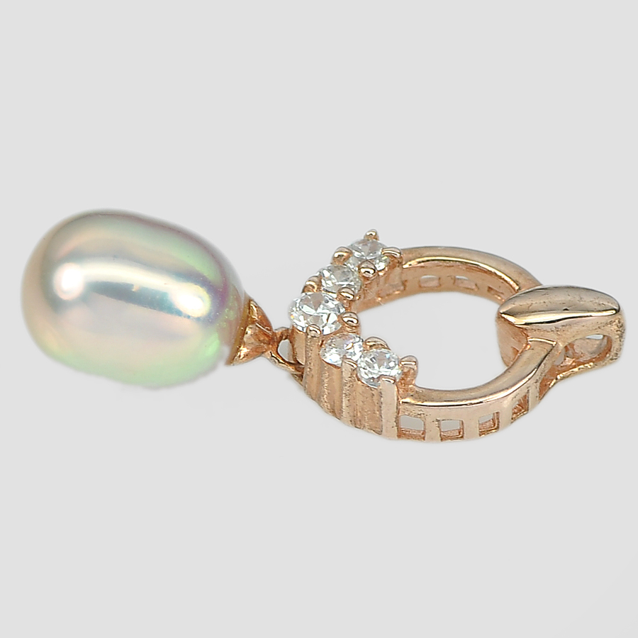 2.03 G. Natural Pink Pearl Real 925 Sterling Silver Rose Gold Jewelry Pendant
