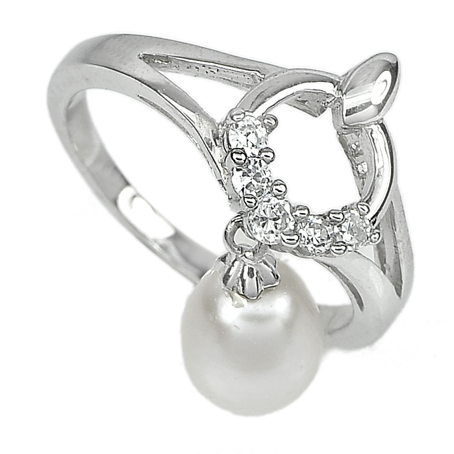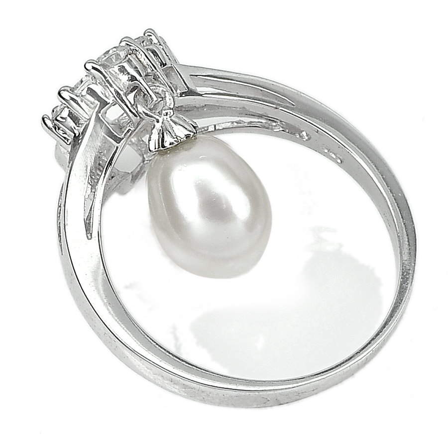 3.45 G. Ravishing Natural White Pearl Jewelry Sterling Silver Ring Size 9