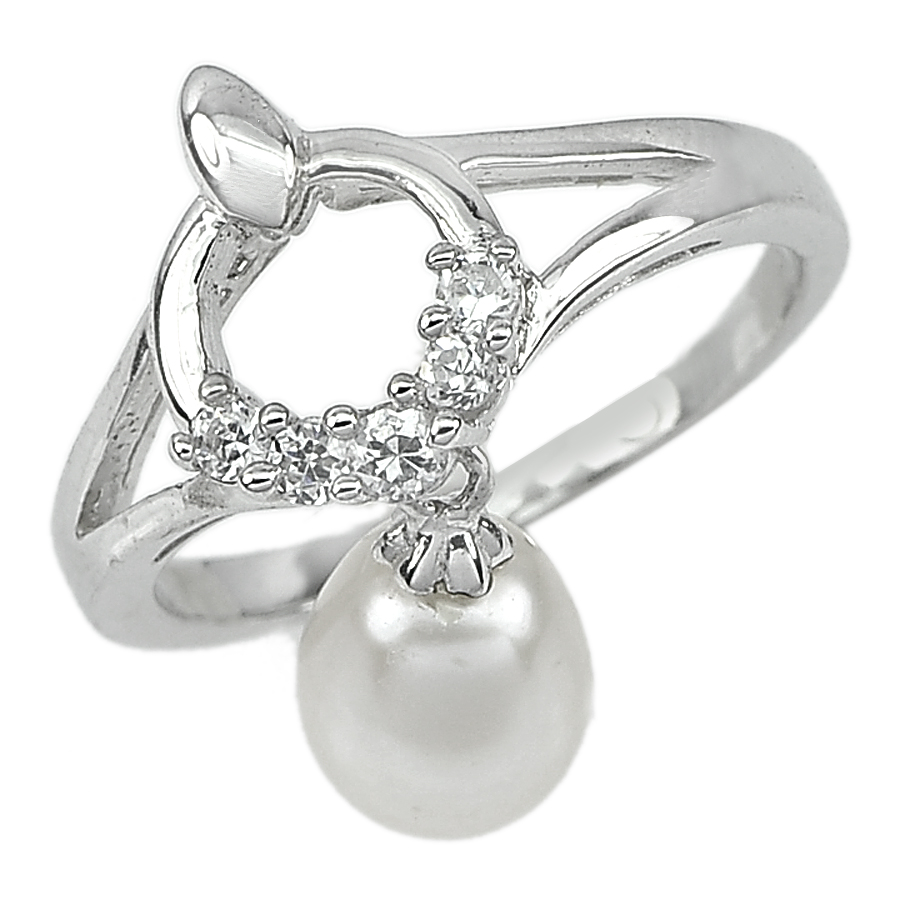 3.45 G. Ravishing Natural White Pearl Jewelry Sterling Silver Ring Size 10.5