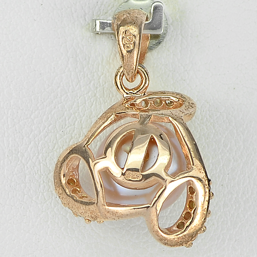 2.76 G. 925 Sterling Silver Rose Gold Pendant Charming Natural Pink Orange Pearl