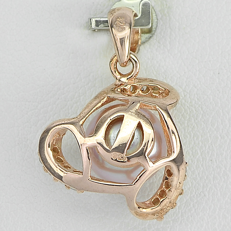 2.51 G. New Design Natural Purplish Pink Pearl Rose Gold Plated Silver Pendent