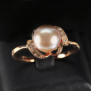 3.45 G. Vivid Natural Orangish Pink Pearl Rose Gold Plated Silver Ring Size 10