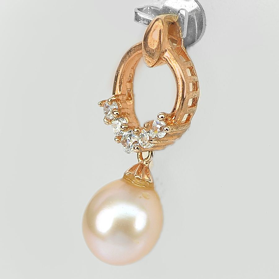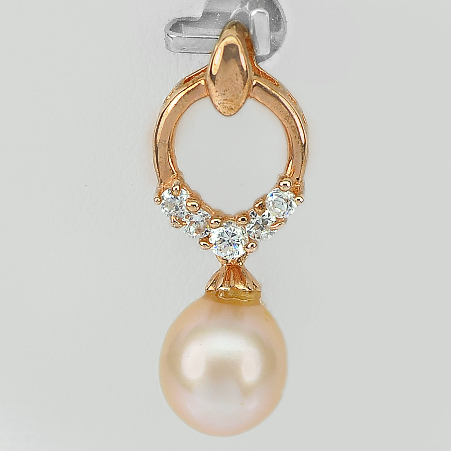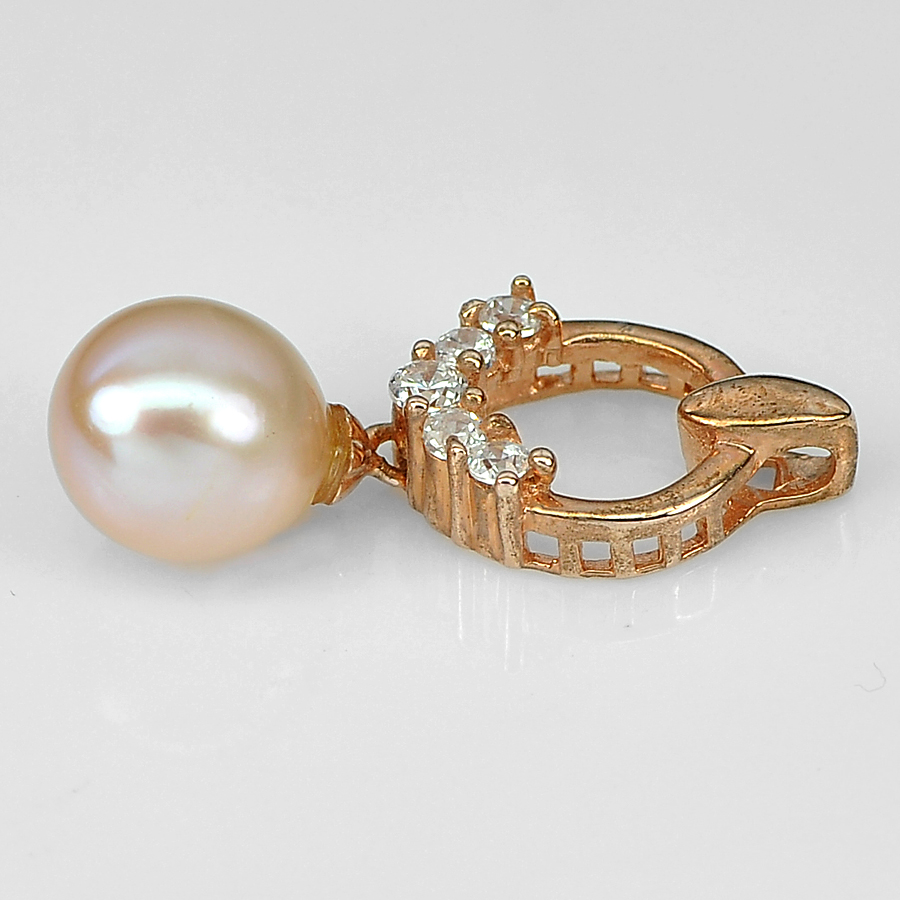 2.07 G. Matey Natural Orangish Pink Pearl Rose Gold Plated Silver Pendent