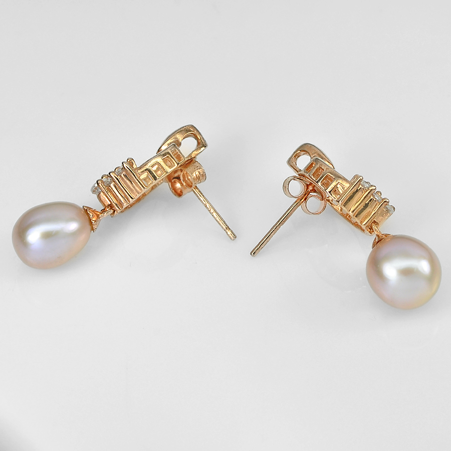 4.42 G. Natural Pink Pearl with CZ Real 925 Sterling Silver Rose Gold Earrings
