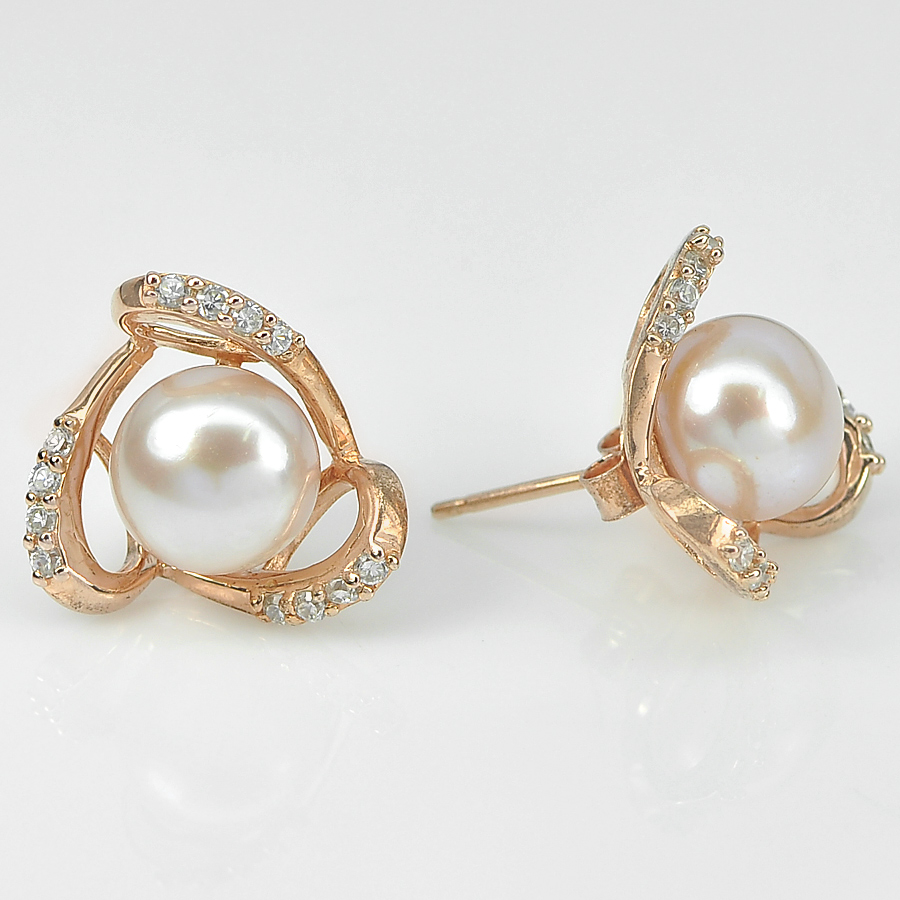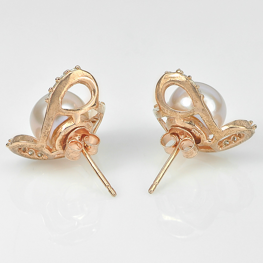 4.87 G. New Design Natural Purplish Pink Pearl Rose Gold Plated Silver Earring