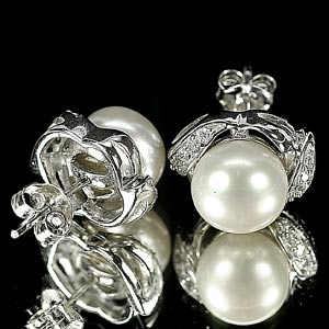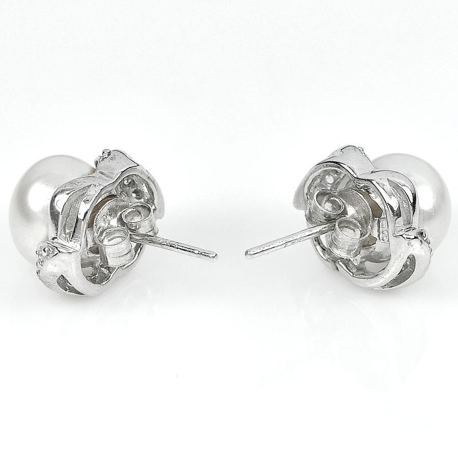 4.45 G. Jewelry Sterling Silver Earrings Natural White Pearl