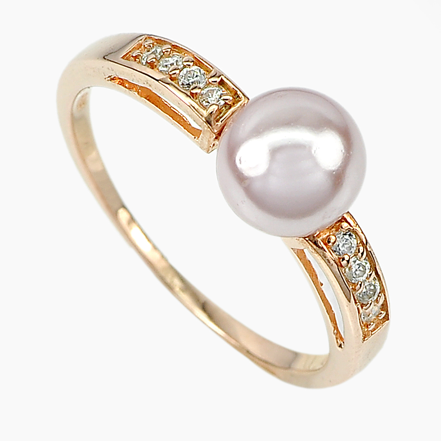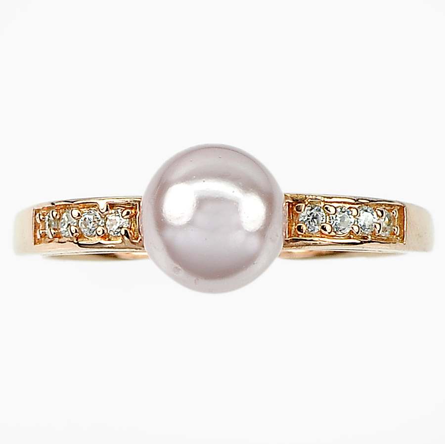 3.13 G. Natural Purplish Pink Pearl Rose Gold Plated Silver Ring Size 10.5