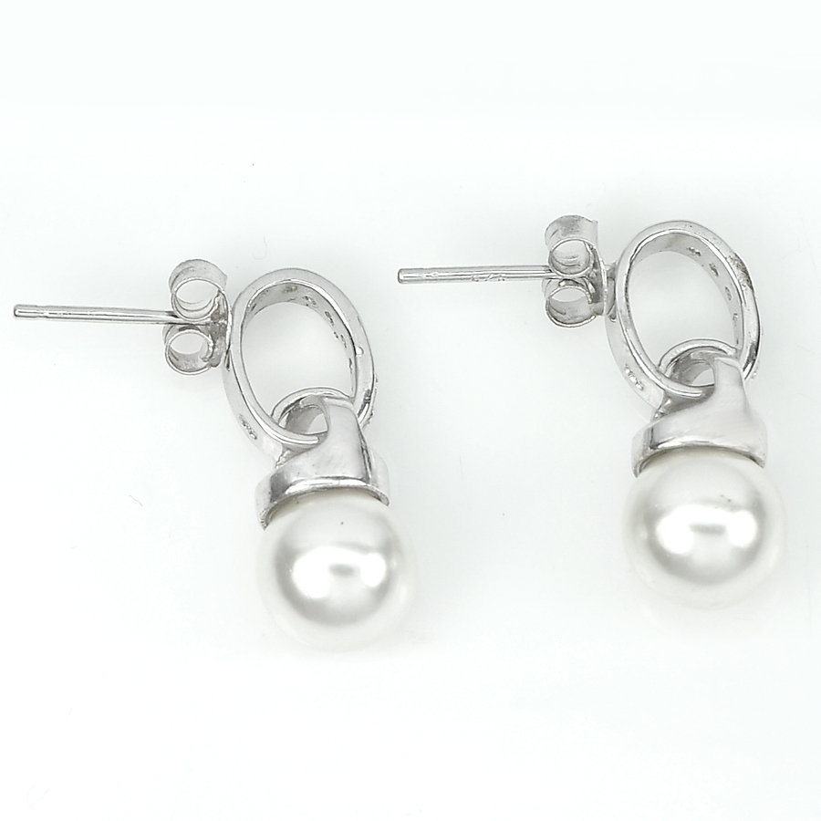 4.53 G. Attractive Natural White Pearl Jewelry Sterling Silver Earrings