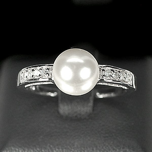 3.17 G. Natural White Pearl Jewelry Sterling Silver Ring Size 8.5