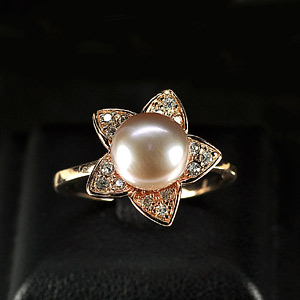4.13 G. Vivid Natural Purplish Pink Pearl Rose Gold Plated Silver Ring Size 8