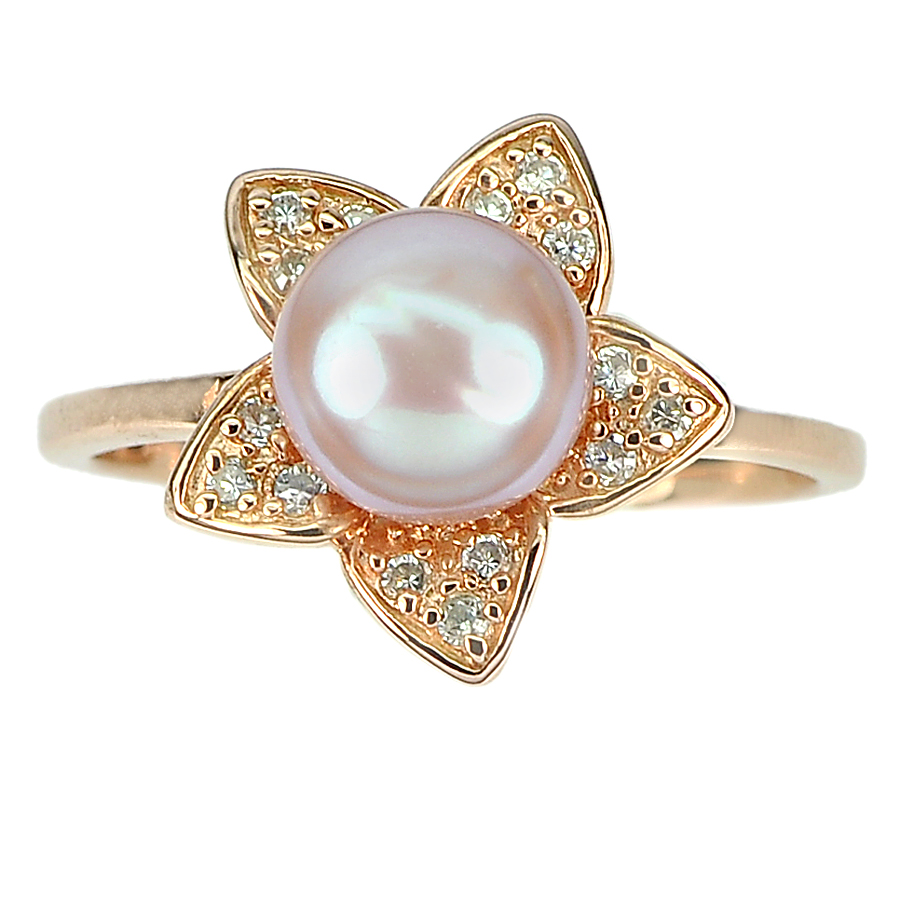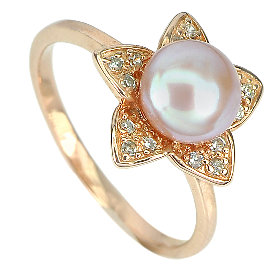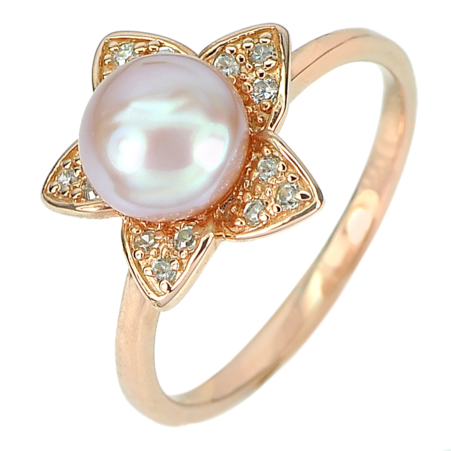 925 Sterling Silver Rose Gold Plated Jewelry Ring Size 8 Good Natural Pearl