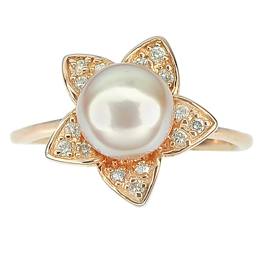 4.28 G. Natural Purplish Pink Pearl Rose Gold Plated Silver Ring Size 8