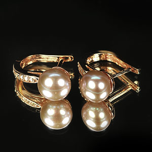 Center: Round Cabochon Natural Purplish Pink Pearl And Round White Cz , Earring Size 18.4 x 11.8 Mm.