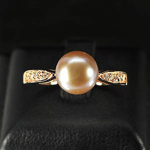 2.99 G. Matey Natural Purplish Pink Pearl Rose Gold Plated Silver Ring Size 9