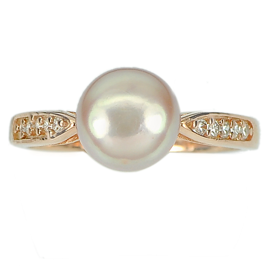 2.93 G. Natural Purplish Pink Pearl Rose Gold Plated Silver Ring Size 8