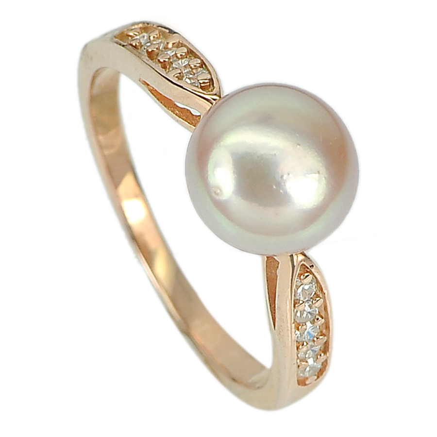 2.99 G. Natural Purplish Pink Pearl Rose Gold Plated Silver Ring Size 8