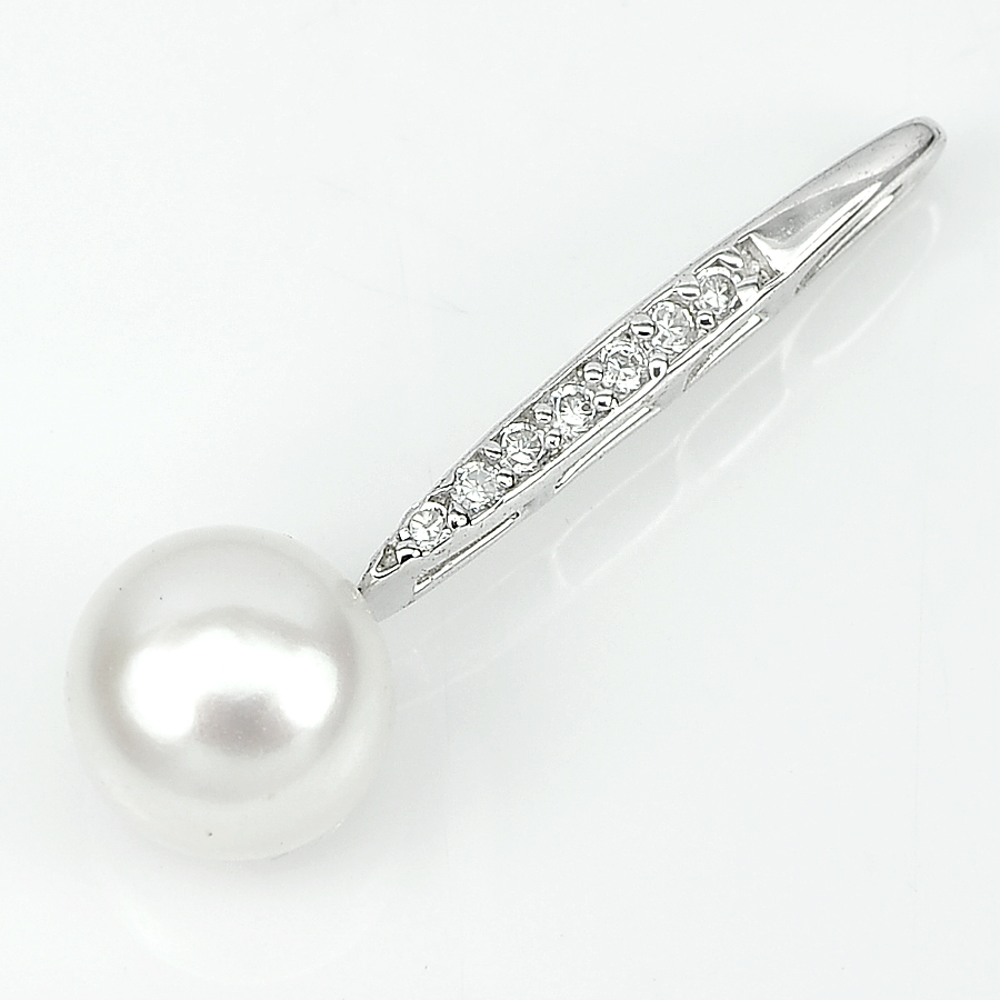 1.94 G. Natural White Pearl with CZ Real 925 Sterling Silver Jewelry Pendant