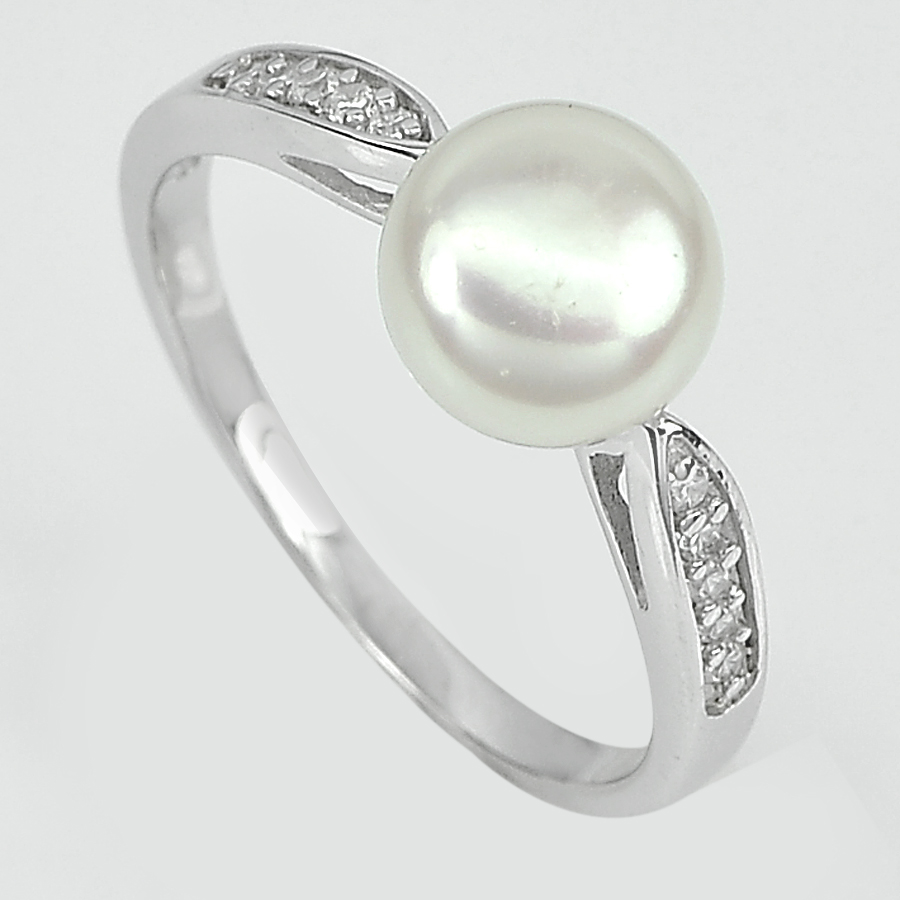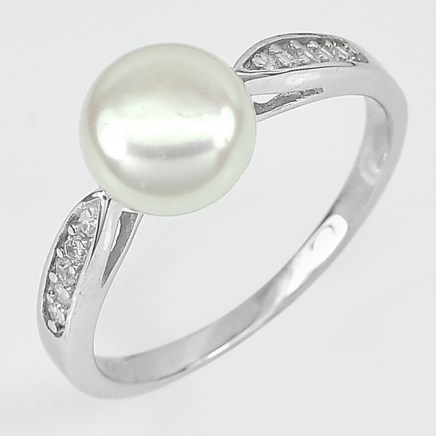 2.83 G. Alluring Natural White Pearl 925 Sterling Silver Ring Size 9