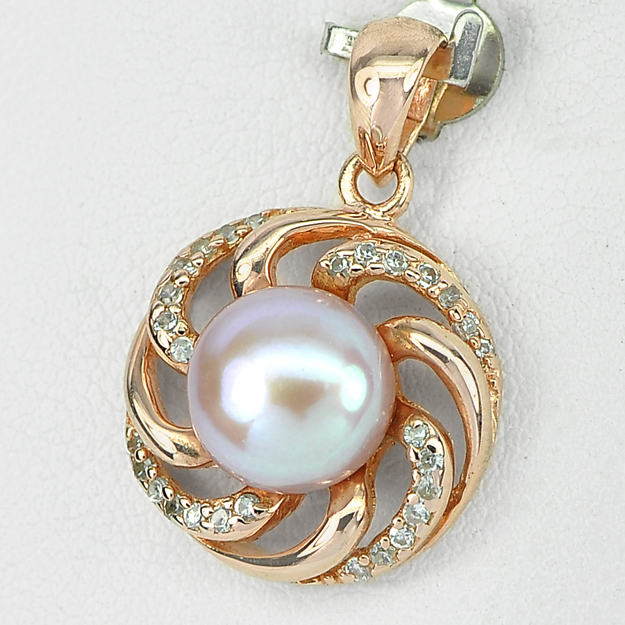 3.36 G. Alluring Natural Pink Pearl Real 925 Sterling Silver Rose Gold Pendant