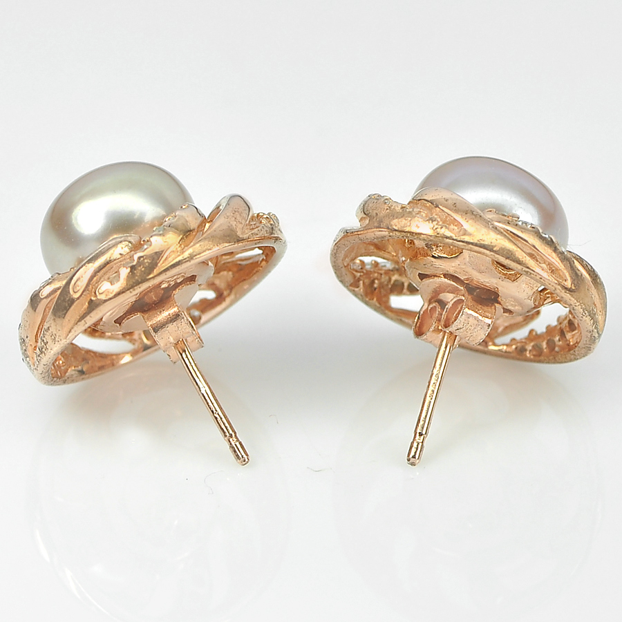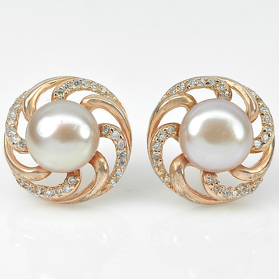 6.34 G. New Natural Purplish Pink Pearl Rose Gold Plated Silver Earring