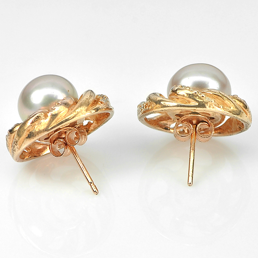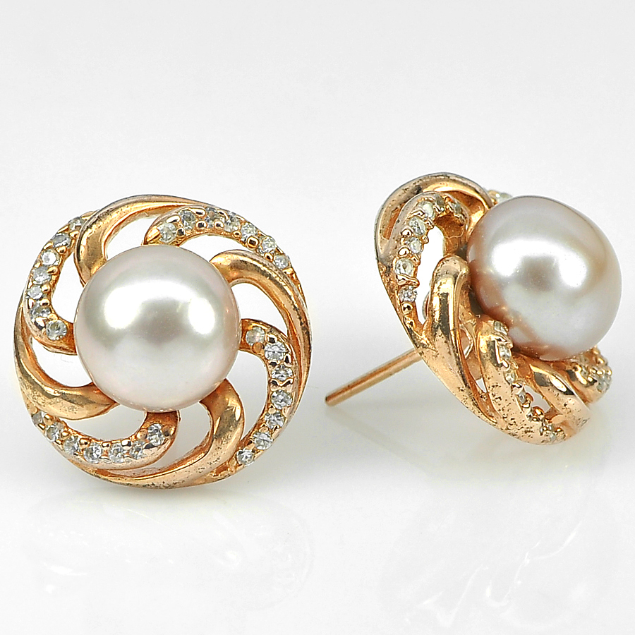 6.49 G. Lovely Natural Pink Pearl Real 925 Sterling Silver Rose Gold Earrings