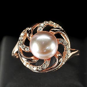 4.68 G. Vivid Natural Purplish Pink Pearl Rose Gold Plated Silver Ring Size 8