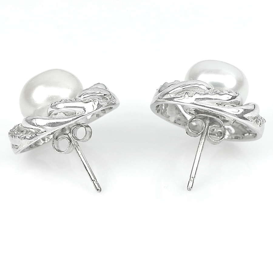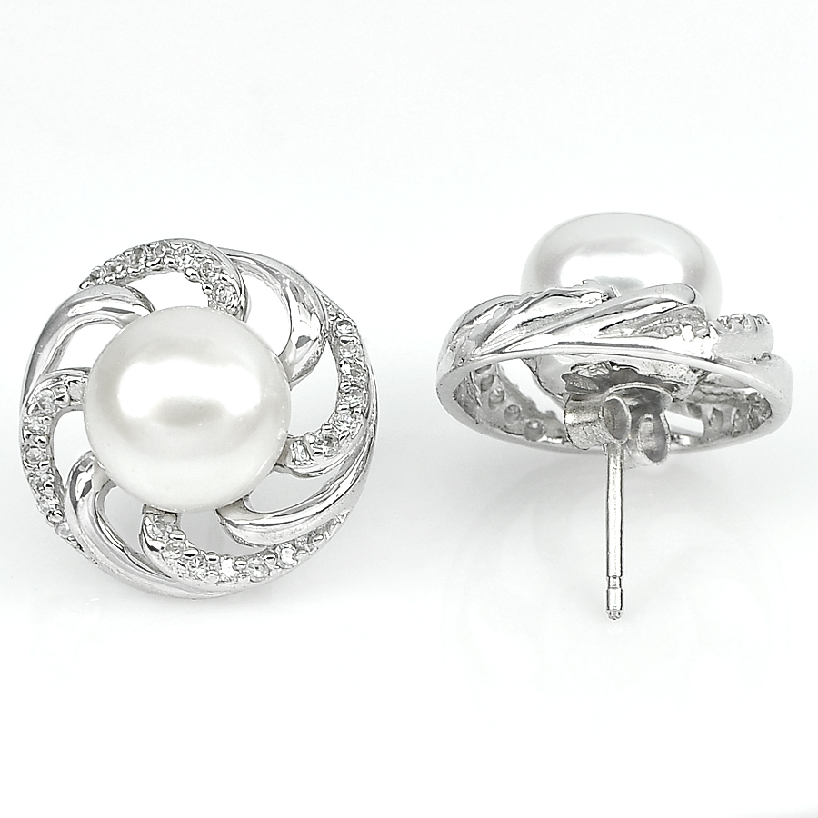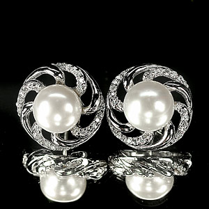 6.44 G. Natural White Pearl Jewelry Sterling Silver Earrings