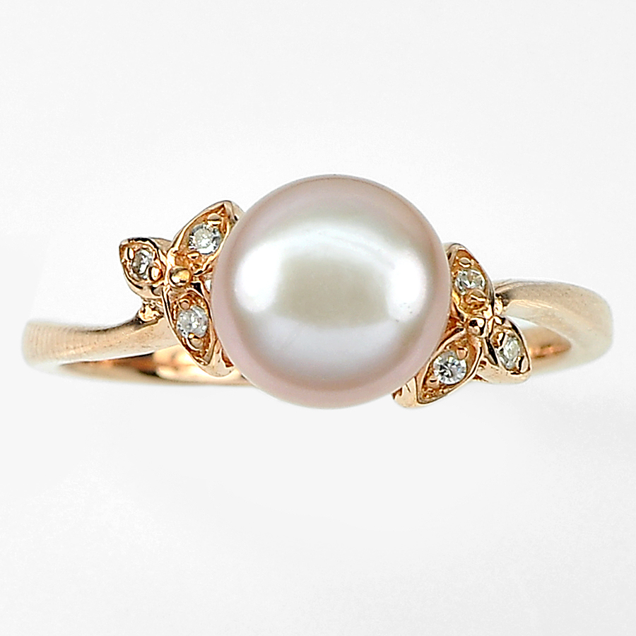 Center: Round Cabochon Natural Pink Pearl Size 8 x 8 Mm. And Round White Cz Size 1 x 1 Mm. 6 Pcs.