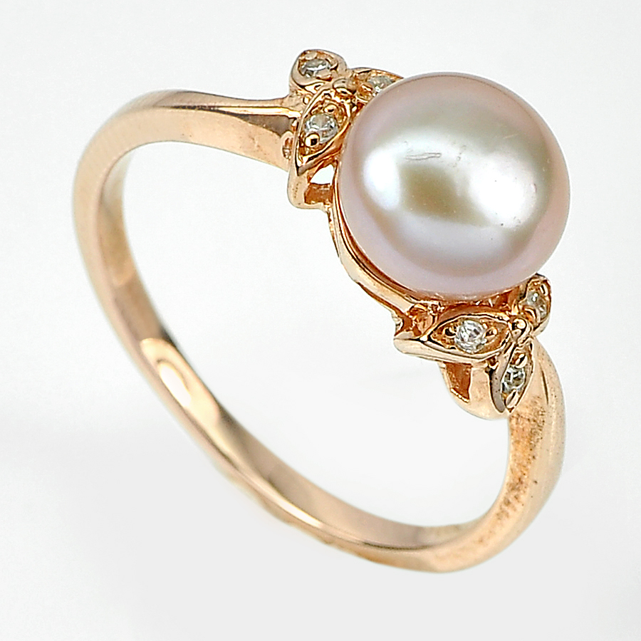 2.86 G. Good Natural Pink Pearl Real 925 Sterling Silver Rose Gold Ring Size 8