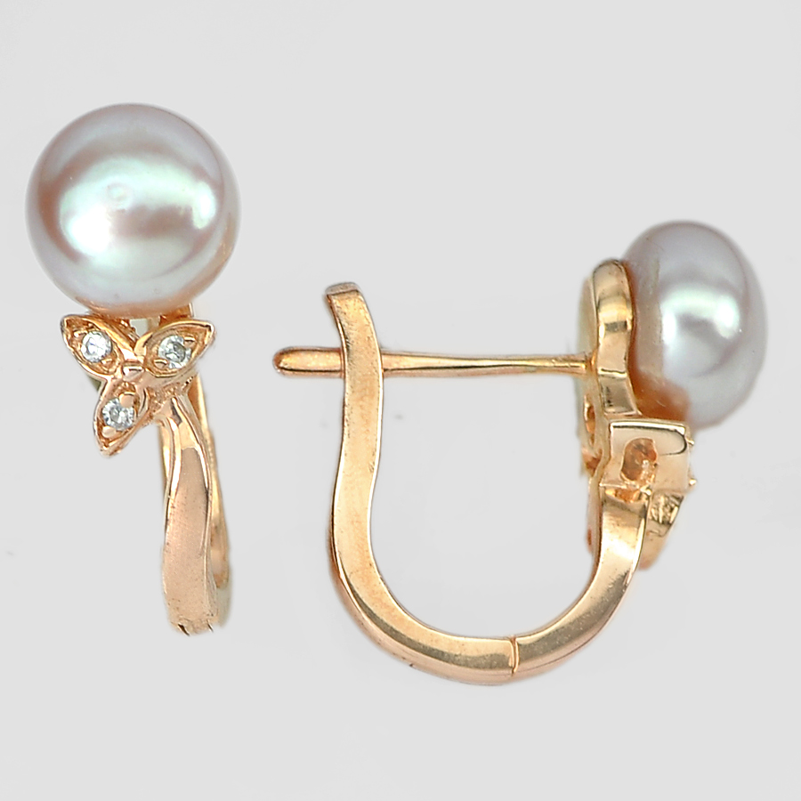 4.87 G. Alluring Natural Pink Pearl Real 925 Sterling Silver Rose Gold Earrings