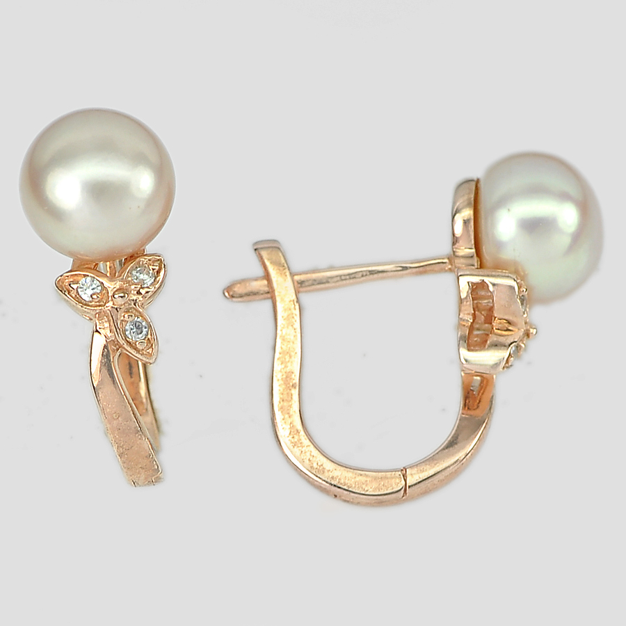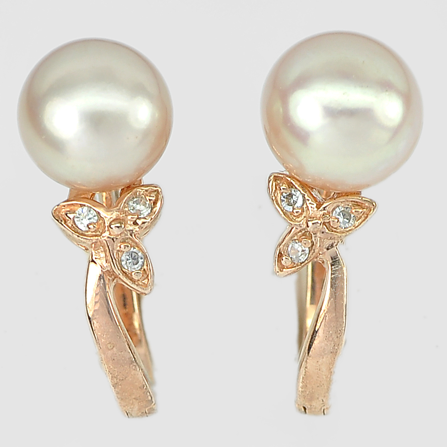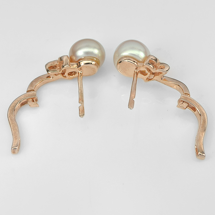 5.13 G. Alluring Natural Orangish Pink Pearl Rose Gold Plated Silver Earring