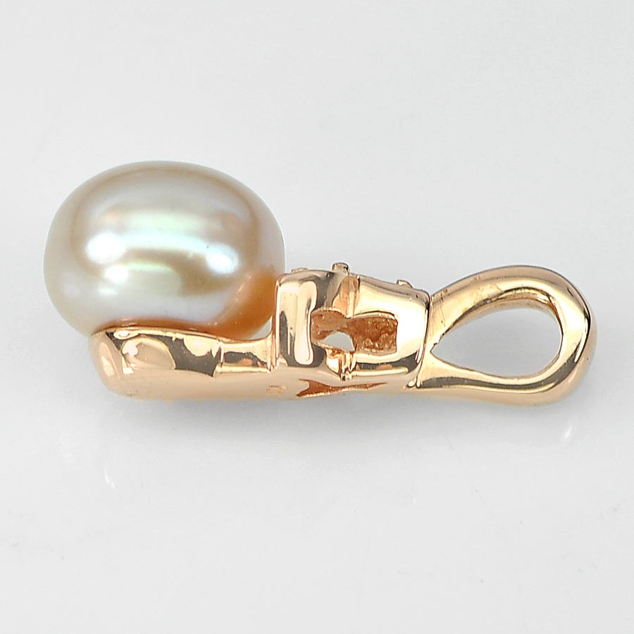 2.05 G. Beautiful Natural Orangish Pink Pearl Rose Gold Plated Silver Pendent